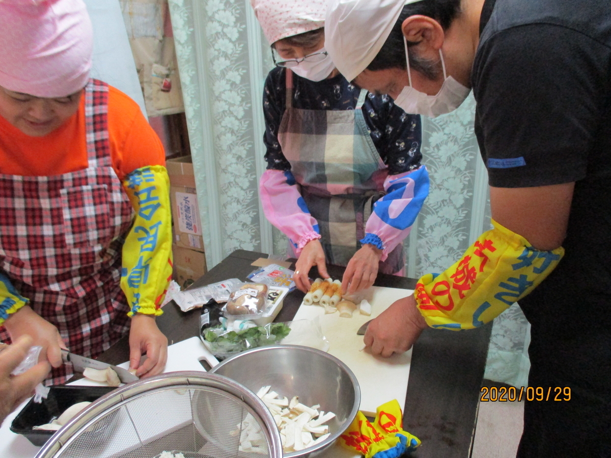 月一回の調理実習の様子。農園で育てた野菜をみんなで調理