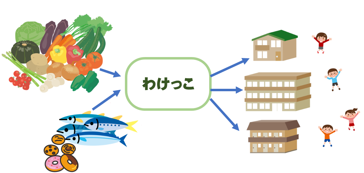 「わけっこ」を行うことによって食材が確保できない団体を支援したり、食材を融通し無駄なく不足なく調整したり、生産者の方の想いを伝えたり、いろいろな食材や食文化を触れてもらう食育をしながら、安心して暮らせるよう社会になることを目指しているそうです。