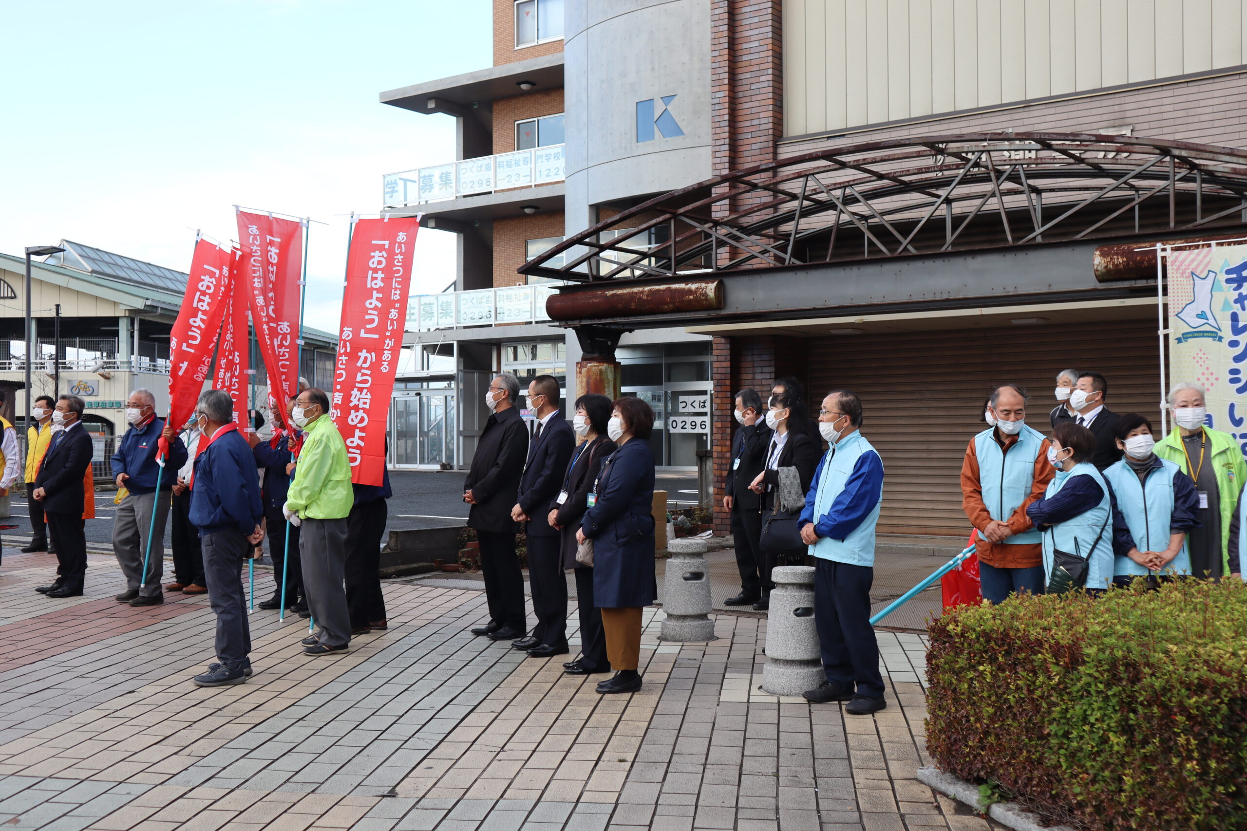 11月10(水)下館駅 早朝7時より、通勤、通学で駅を利用する方々に、各関係団体の皆さんと「おはようございます」「行ってらっしゃい」の声かけを行いました。
