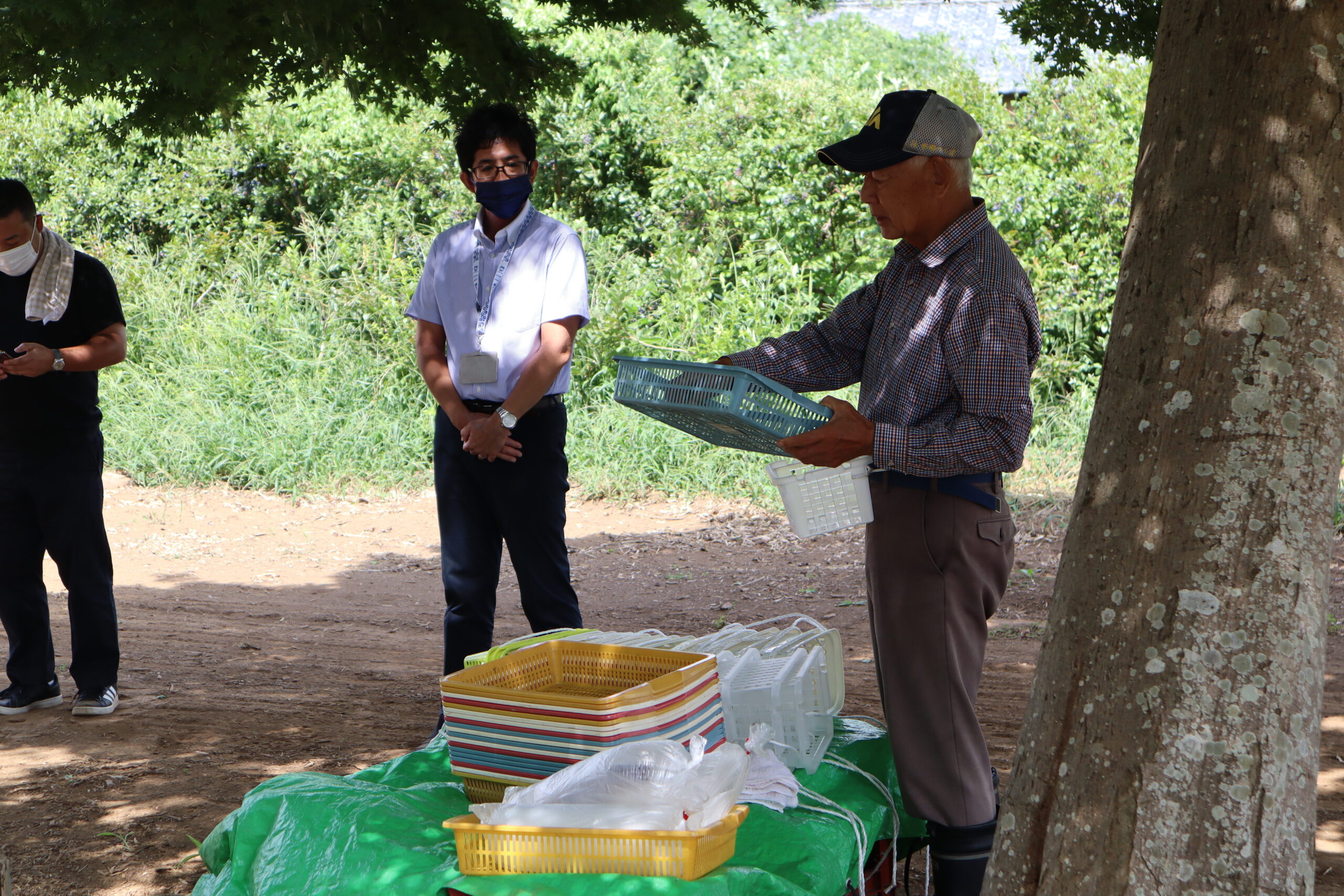 収穫後、暑い中頑張ってくれた学生のために、坂農苑さんから嬉しい差し入れが。