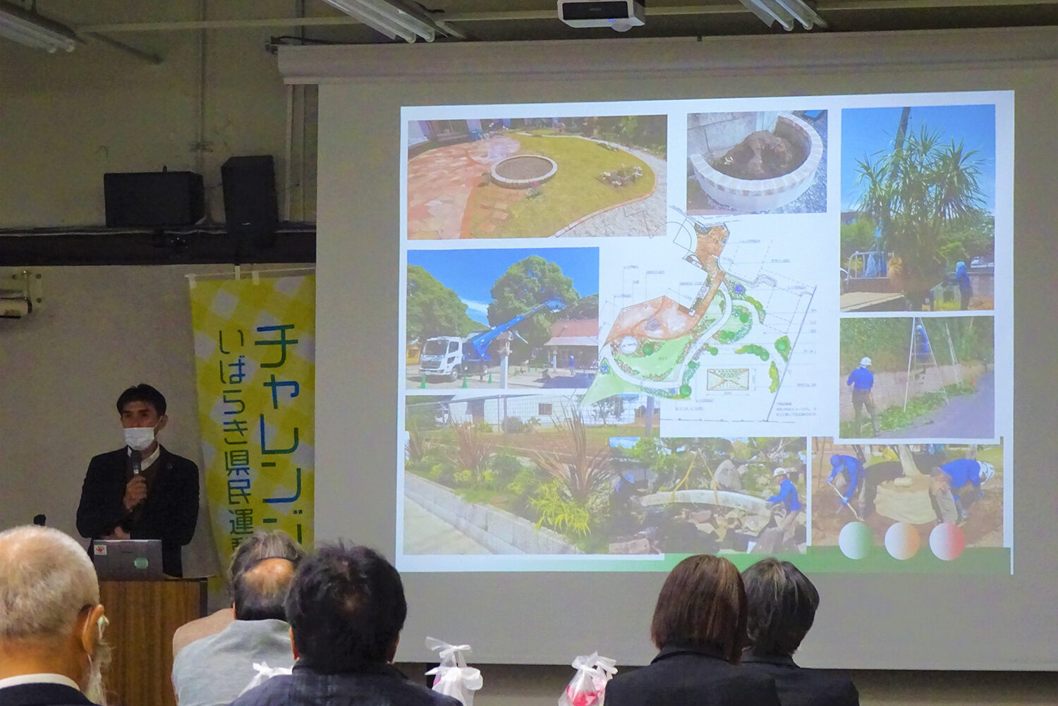 認定証交付式では、今年度応募のあった43の団体・学校から認定された24の団体・学校に対し、チャレンジいばらき県民運動 理事長 阿部真也と公益財団法人 げんでんふれあい茨城財団 専務理事 髙橋鉄夫より認定証を交付するとともに、目録及び花壇に設置する看板を贈呈いたしました。