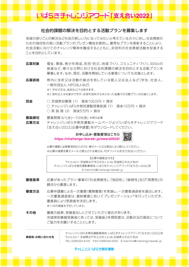 いばらきチャレンジアワード「支え合い2022」募集を開始しました!