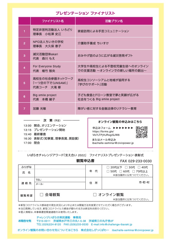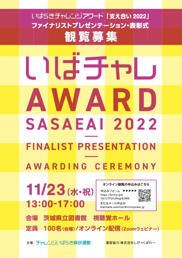 いばらきちゃれんじアワード「支え合い2022」ファイナリストプレゼンテーション・表彰式(2022/11/23)