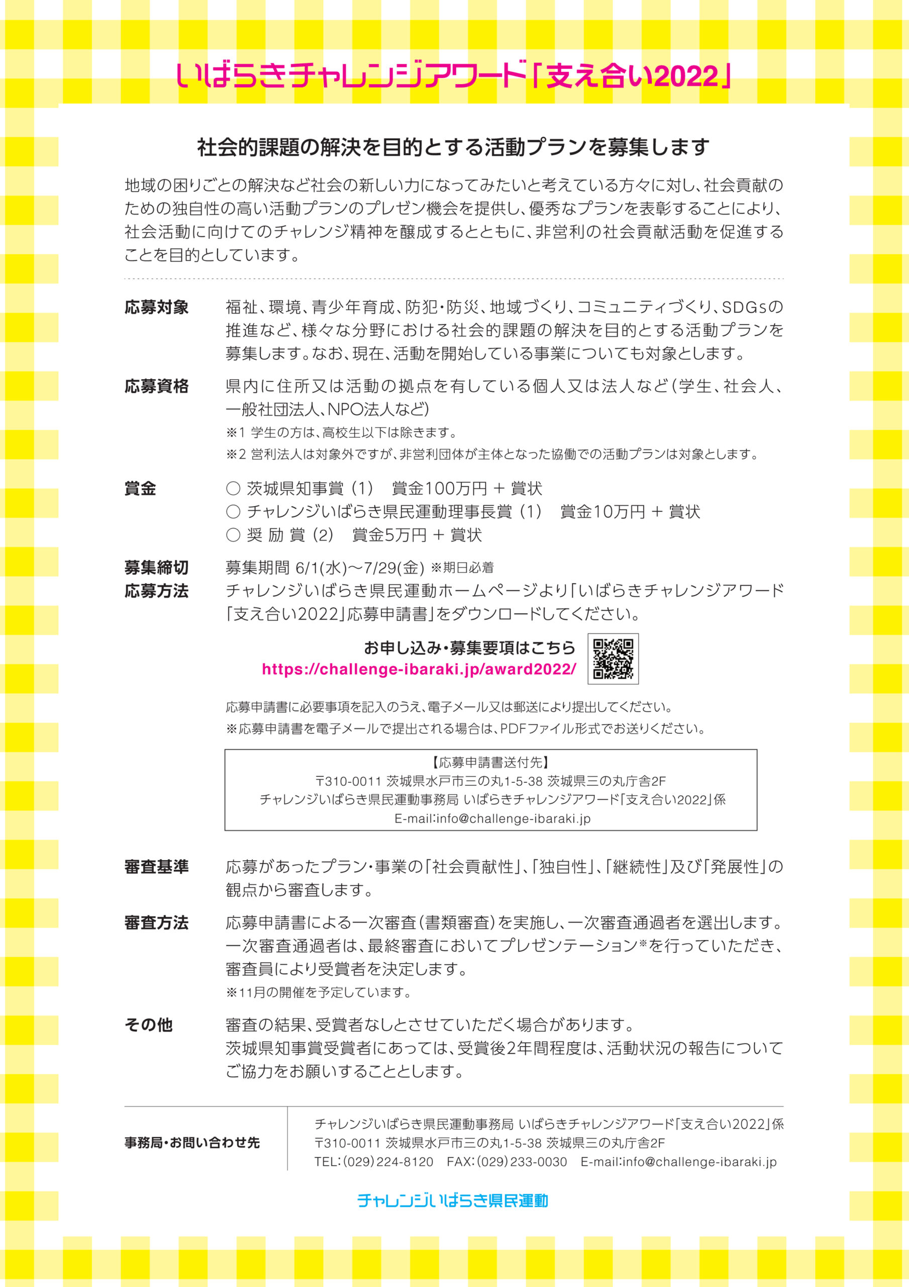 いばらきチャレンジアワード「支え合い2022」募集を開始しました!