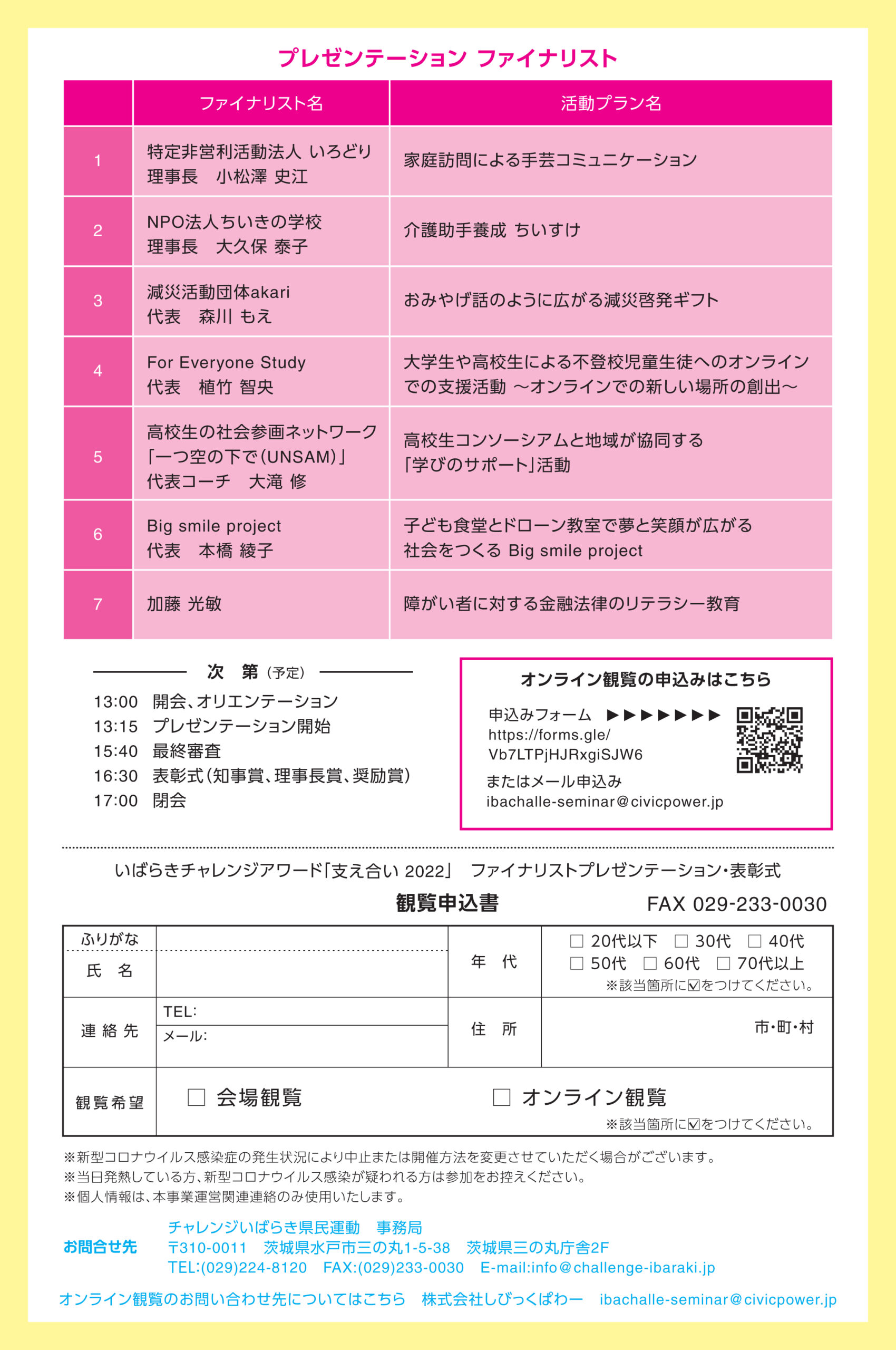 いばらきちゃれんじアワード「支え合い2022」ファイナリストプレゼンテーション・表彰式(2022/11/23)