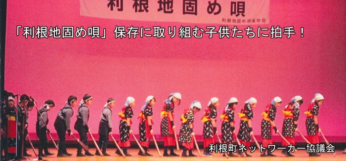 平成元年,有志による「利根地固め唄保存会」を結成,平成14年12月に無形民俗文化財に指定され,「地固め唄」の音頭,ヤ声ごえ,所作を習得し,その作業を再現して伝承をはかっています。
