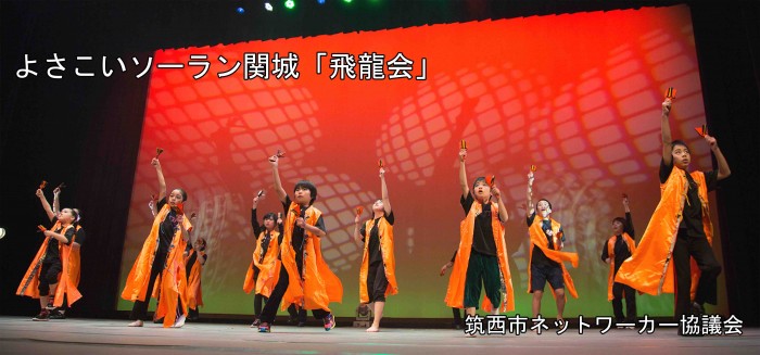 飛龍会は、筑西市ネットワーカー協議会関城支部の会員が参加指導し、子供たちは、大好き いばらき ネットワーカーのアンダーメンバーとして、踊りだけではなく、地域を大切にし人と人の関わりを繋げる事を目的の一つとして活動をしています。よさこいソーラン踊りを通して元気と明るさを届け、子供たち自身にもふるさとを愛する心が育っている事を実感します。