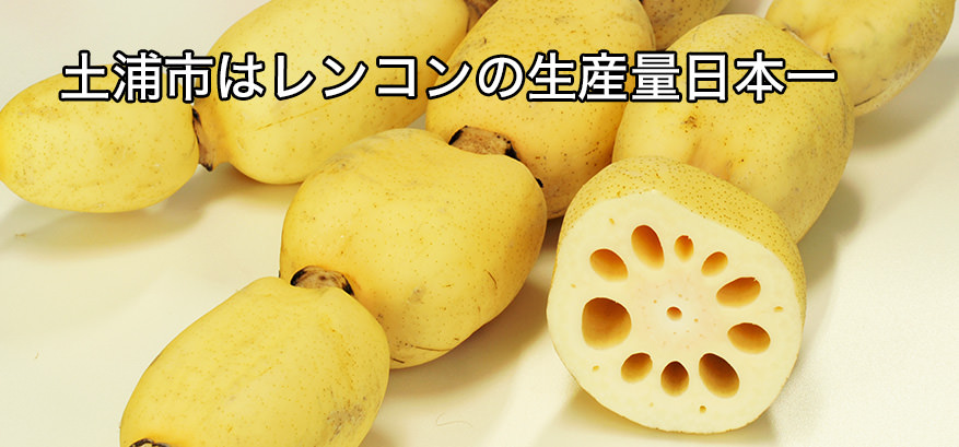 雄大な霞ヶ浦に面する土浦では、その風土を活かしたレンコンの生産量は日本一です。煮物や天ぷらはもちろん、すりおろして焼けばもちもちとした食感が楽しめます。また、麺や漬物、サブレ、パイなどの加工品も人気です。