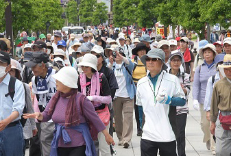 5月25日、鹿嶋神の道のオープニングセレモニーでは、約300名が参加し,セレモニー後に“歩き初め”を行いました。コースには新たに整備して蘇った三社詣りの古道や,昨年完成した北浦湖畔に立つ一之鳥居など,まさに悠久の神の道を体感できます。コース途中には,シンボルマークの鳥居をデザインした4カ国語の案内板と破魔矢をデザインした道標が約100カ所設置されており、外国人も安心して楽しく歩くことができます。