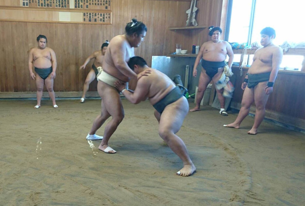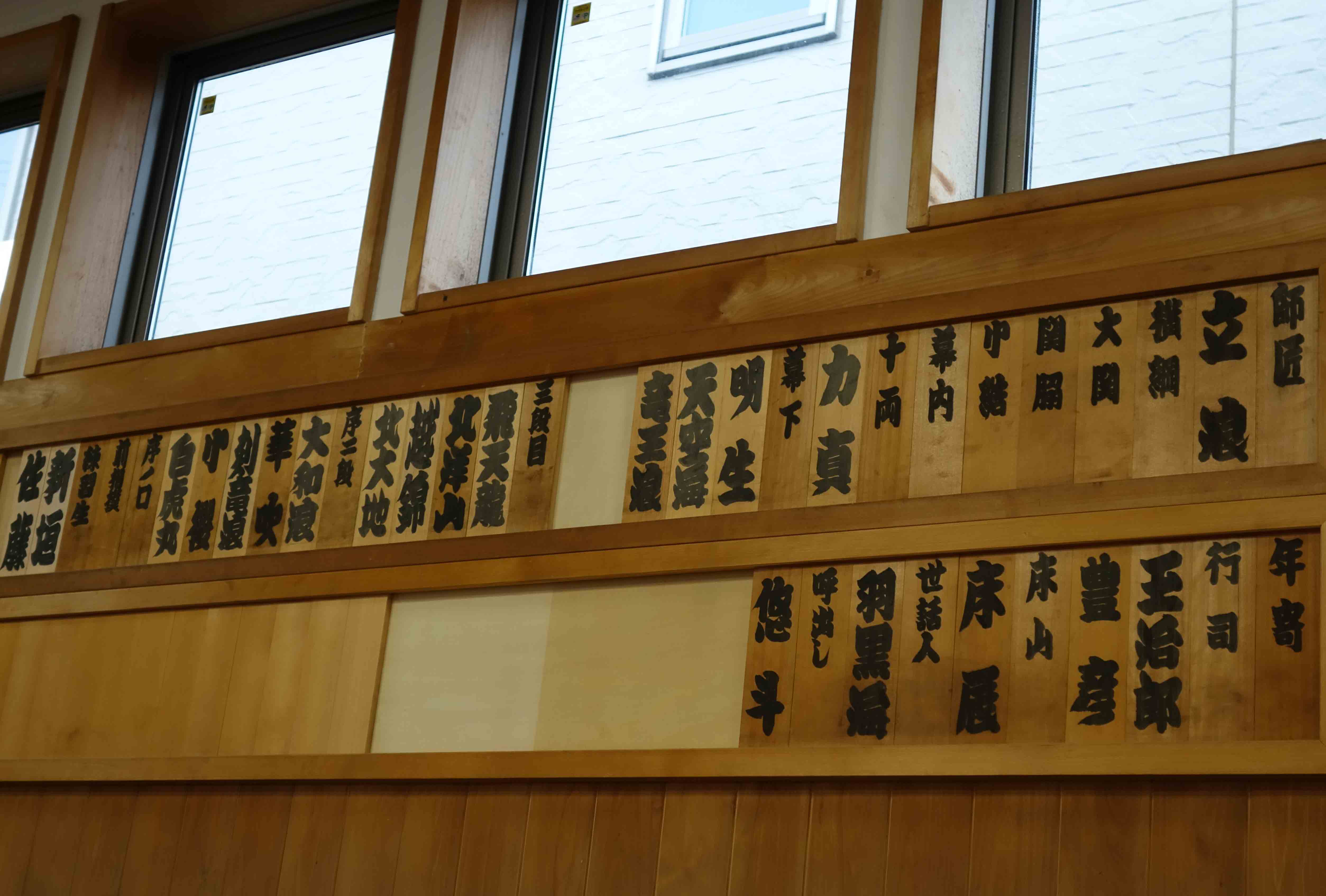 十両の「力真(りきしん)」(平成29年3月場所番付より)を筆頭に,14名の力士たちが横綱を目指し,日々稽古に励んでいます。予約をすれば,朝早くから稽古をする迫力ある力士の姿を間近で見学することもできます。