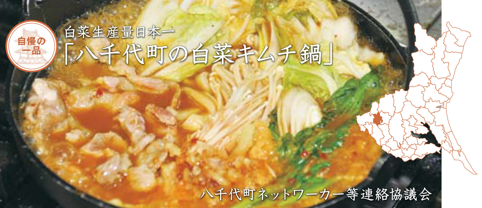 八千代町では、白菜の消費拡大と町のイメージアップを目的に、町、JA常総ひかり、町商工会が中心となり、町ぐるみで白菜キムチ鍋プロジェクトを始めました。