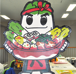 白菜のキャラクター「八菜丸」(はなまる)のイラストが入ったのぼり旗が、加盟店の目印です。