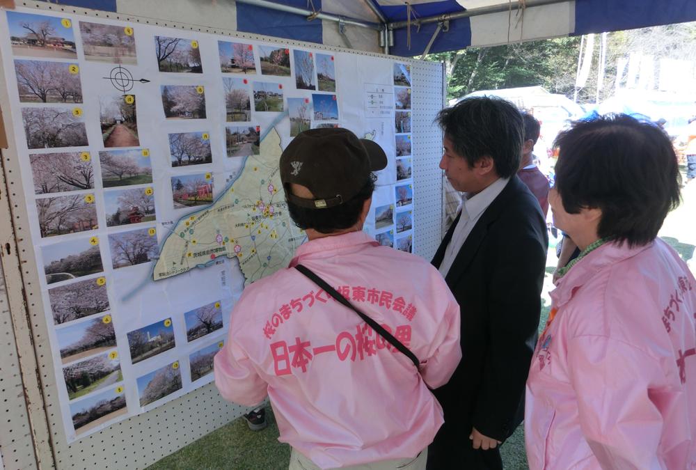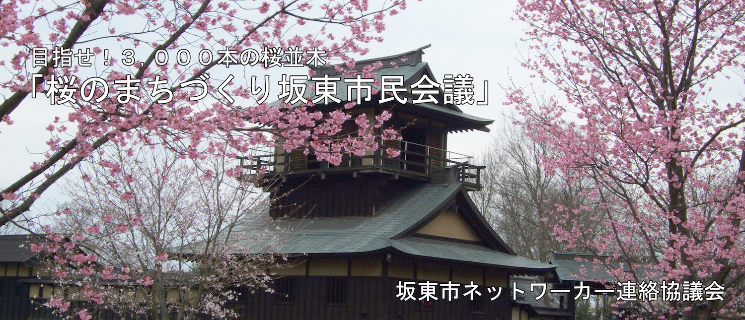 坂東市では、平成22年に、“3000本の桜並木を作ろう”と、「桜の里親制度」をスタートさせました。「桜のまちづくり坂東市民会議」では、市民の立場でこの運動を啓発するために、“さくらまつり”や“ホコテン”など、市内の主要なイベントでPR活動をしています。