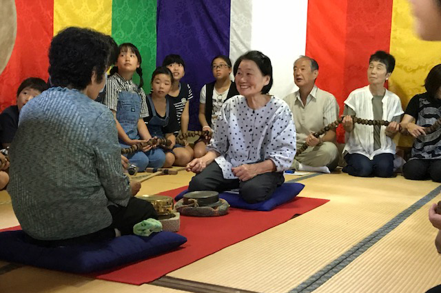 参加者は壁を背に車座となり、約33メートルの大数珠を太鼓や鉦の音に合わせ、「南無阿弥陀仏」の念仏を唱えながら時計回りに回し、家内安全や五穀豊穣を願います。