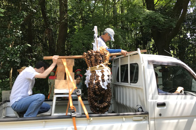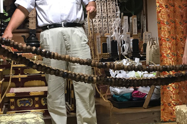 願いが掛けられた数珠はこの後、3人の男性に担がれ、同町内の家を一軒一軒回ります。