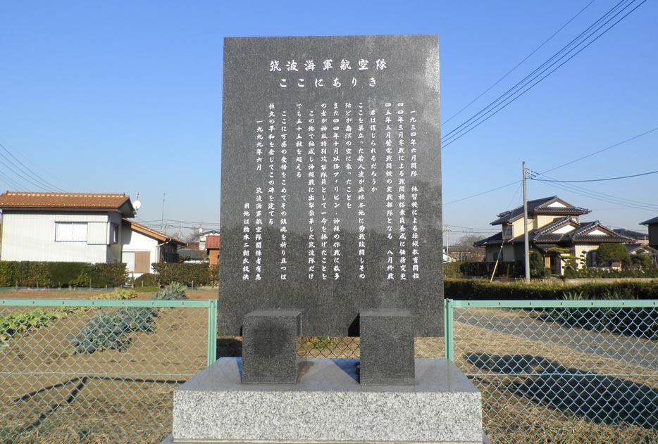 筑波海軍航空隊は,霞ヶ浦海軍航空隊の友部分遣隊として昭和9年8月15日に発足し,飛行操縦基礎教育を任務としました。終戦後,隊は解体されましたが,この場所は旧制水戸高等学校,宍戸中学校,茨城青年師範学校を経て県立友部病院(現・茨城県立こころの医療センター)として利用され,ほぼ原型のまま残る史跡であり,映画「永遠の0(ゼロ)」のロケ地としても名を馳せた場所です。