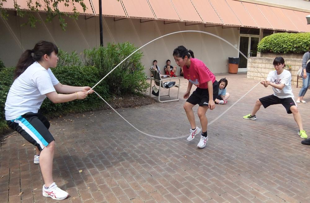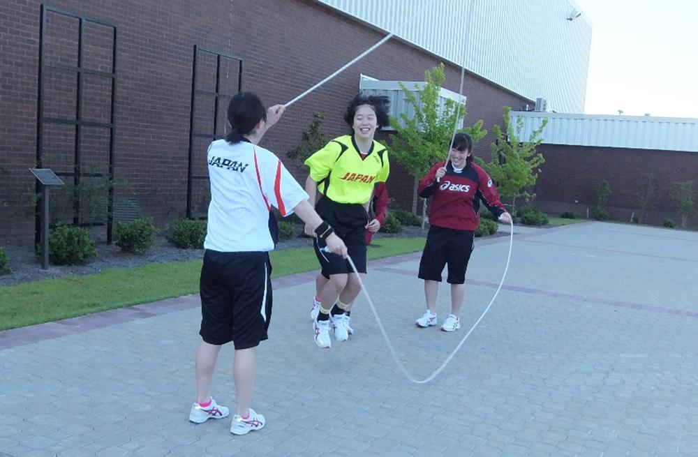 親子の会話ツールとして始めたのが当初のキッカケとのことで、メンバーが大人になった今も親子一緒になって練習しているとのこと。縄2本でどこでもできるダブルダッチは、集中力、持久力、リズム感、創造力、バランス、そしてチームワークが身に付くそうで、目にも止まらぬ縄の速さに圧倒される一方、参加して1ヶ月の小学生でも縄の回し手と跳び手が入れ替わる技をこなす等、まさに誰でも楽しめるスポーツですね。