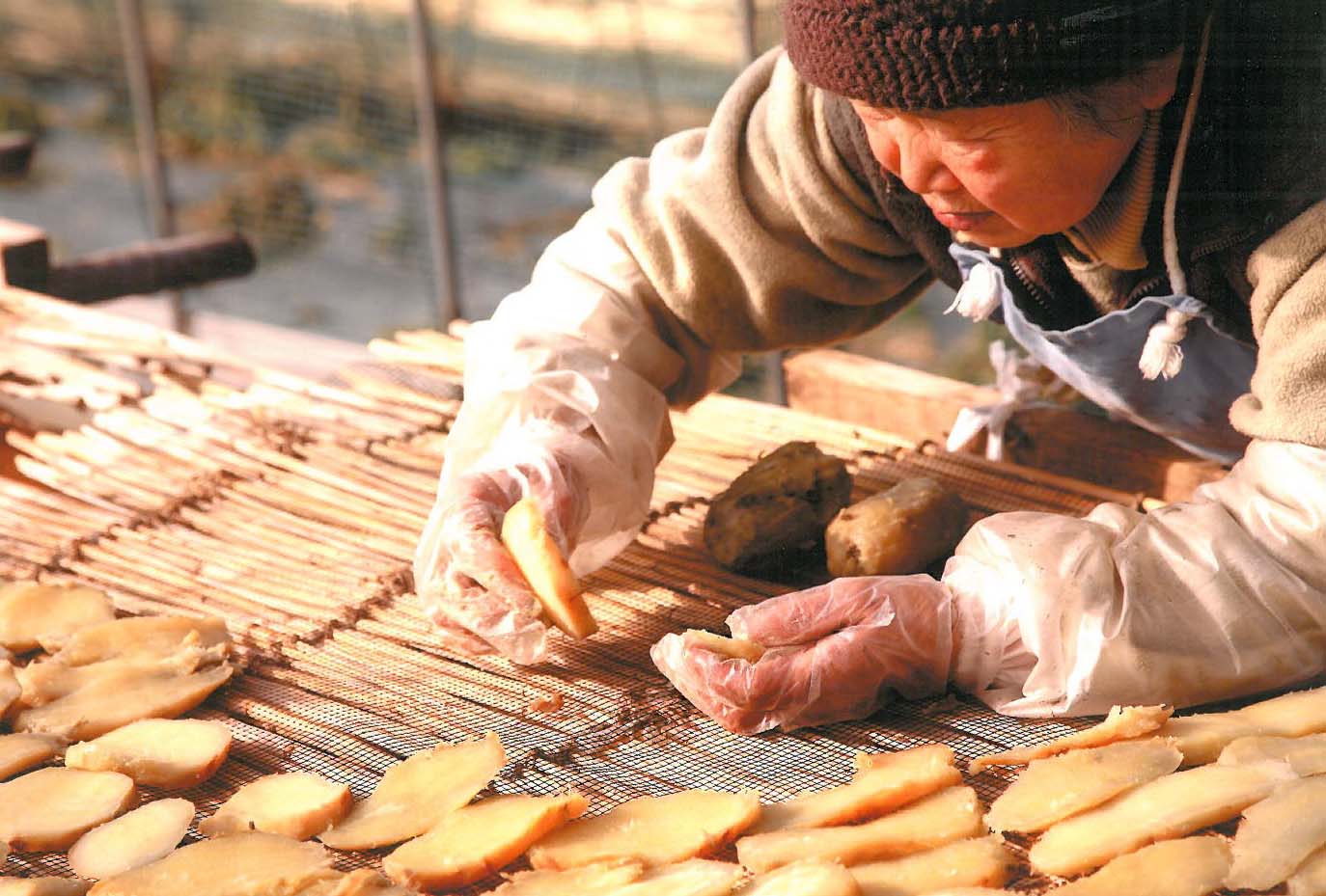 ほしいもは明治時代末期に,那珂湊地区(現・ひたちなか市)で農業や漁業の副業として行われていた甘藷(かんしょ)の切干製造が「ほしいも」の基礎と言われています。