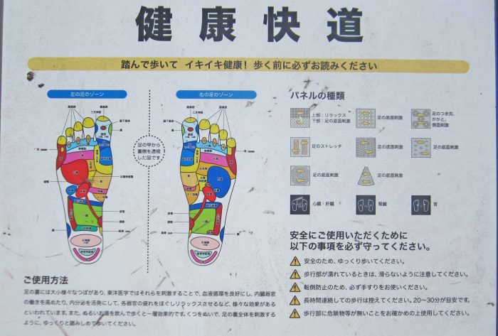 普段から利用している方々は,足裏健康歩道を利用したウォーキングが健康の源だと話しています。足裏のツボに関する説明看板も設置されていますので,気になる足ツボを刺激しながら試すことができます。