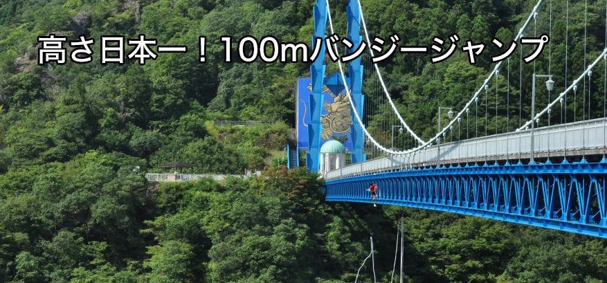 高さ日本一の竜神大吊橋からのバンジージャンプは、近年多くのメディアに取り上げられ、スリルをもとめ県内外からたくさんの人が訪れています。